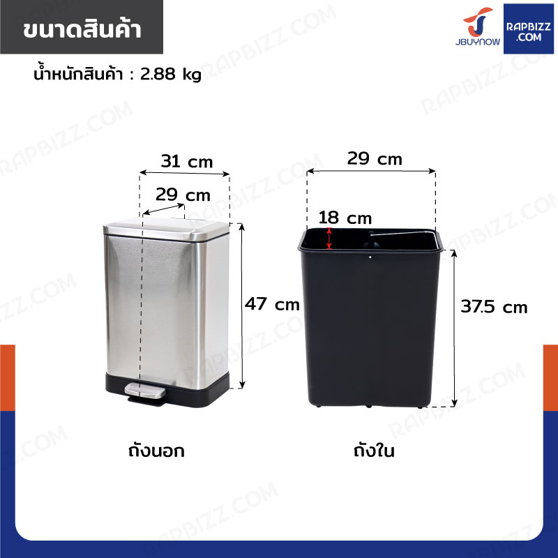 - ขนาดถังด้านใน: 18x29x37.5 cm