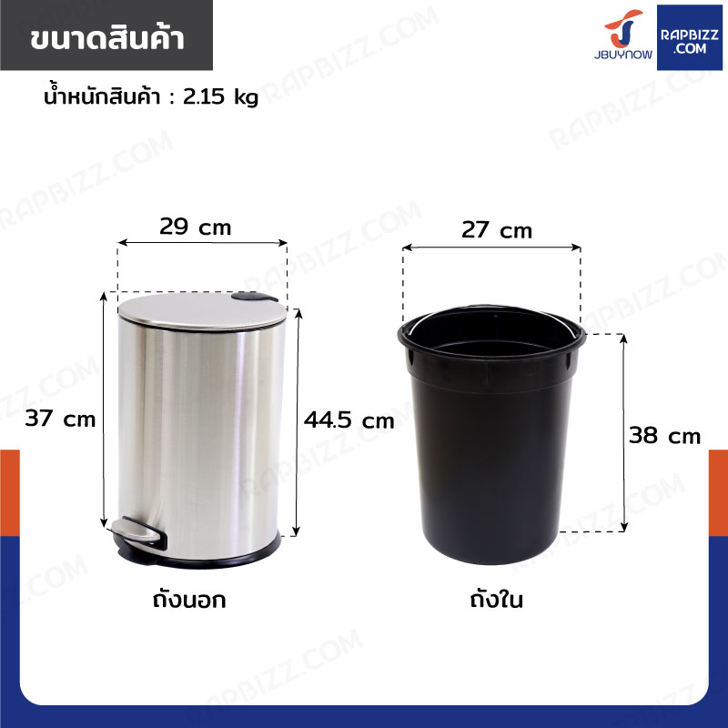 - ขนาดถังด้านใน: 27x27x38 cm