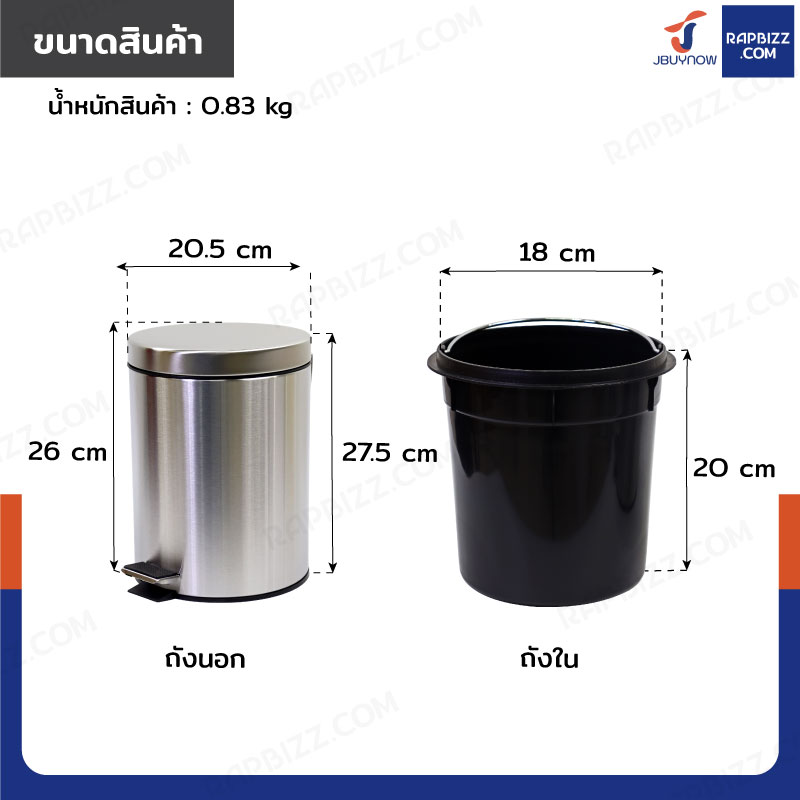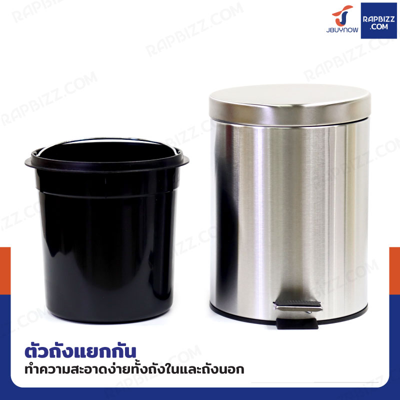 ถังขยะสแตนเลส แบบเหยียบ ทรงกลม 5 ลิตร 20.5x26x27.5 cm