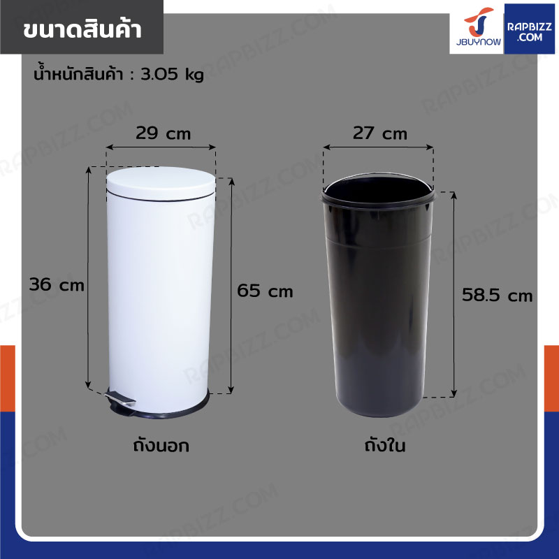 - ขนาดถังด้านใน: 27x27x58.5 cm