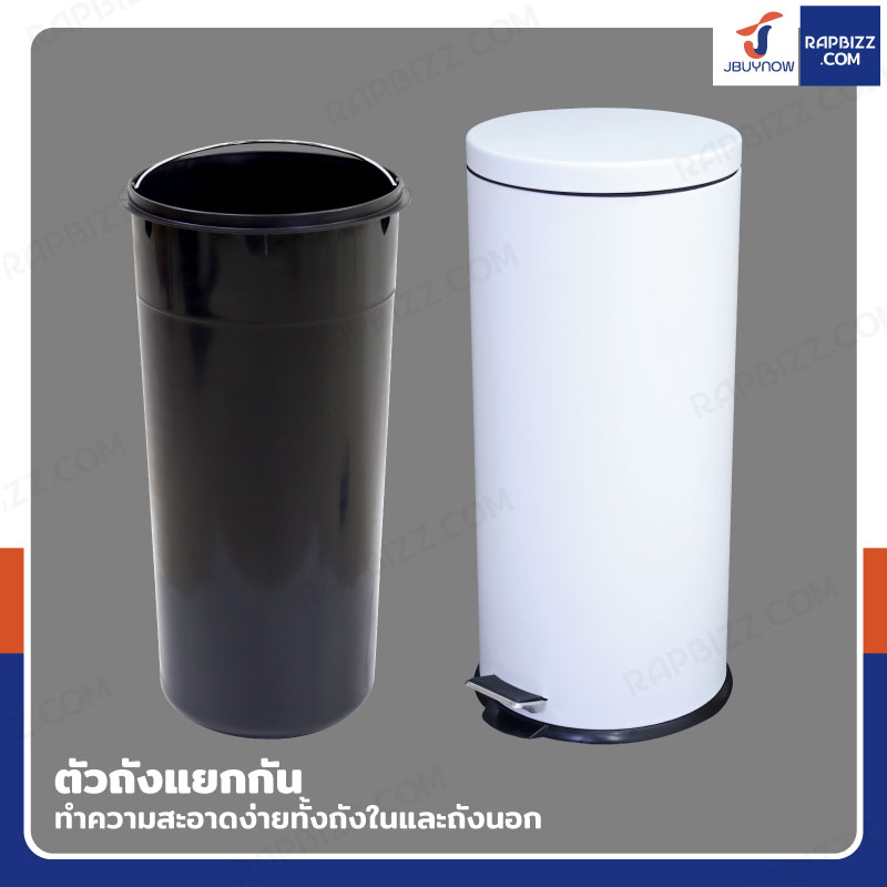 ถังขยะ แบบเหยียบ ทรงกลม 30 ลิตร 29x36x65 cm สีขาว