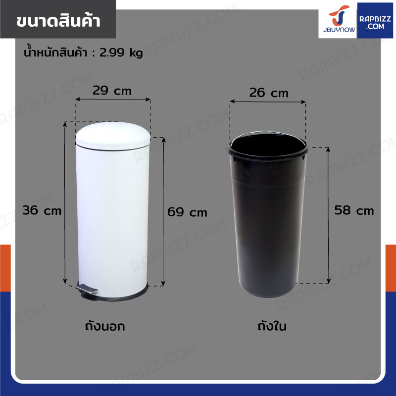 - ขนาดถังด้านใน: 26x26x58 cm