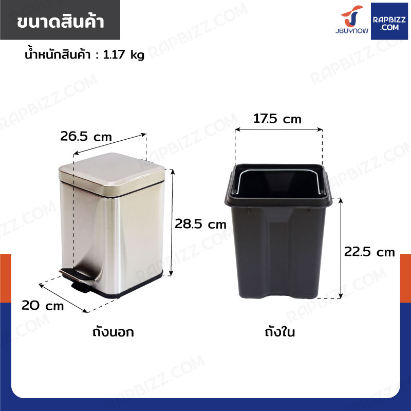 - ขนาดถังด้านใน: 17.5x17.5x22.5 cm