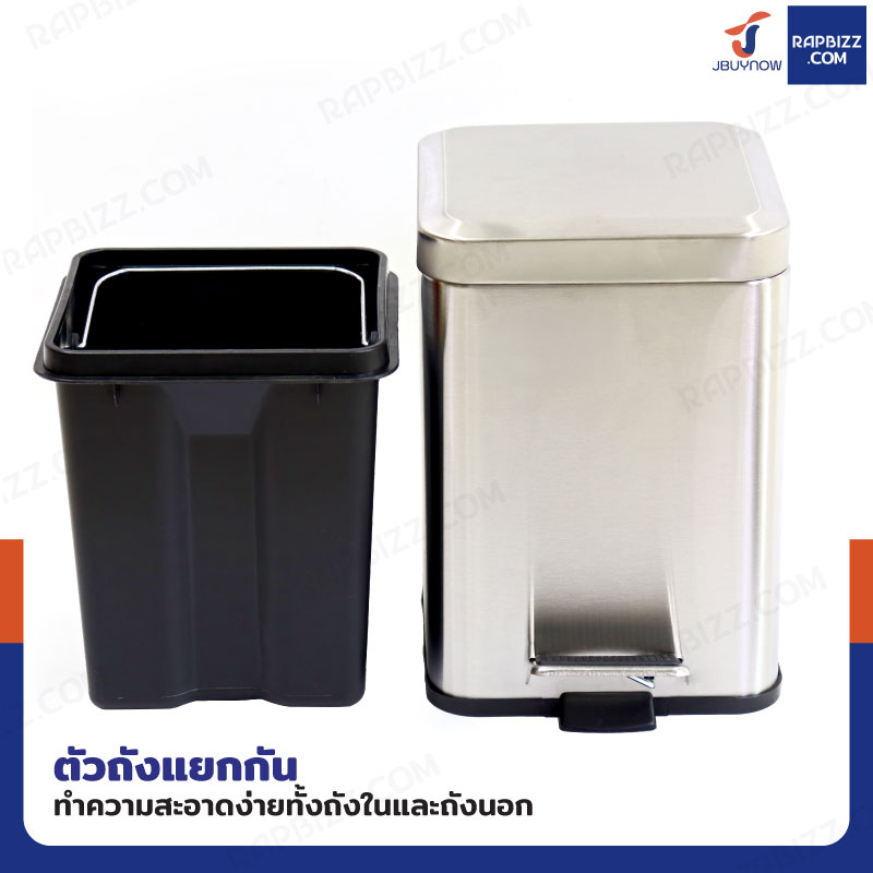 ถังขยะสแตนเลส แบบเหยียบ ทรงเหลี่ยม 6 ลิตร 20x26.5x28.5 cm
