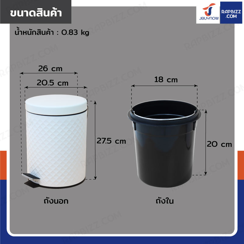 - ขนาดถังด้านใน: 18x18x20 cm