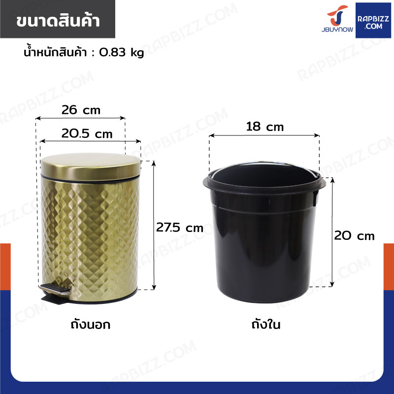 - ขนาดถังด้านใน: 18x18x20 cm