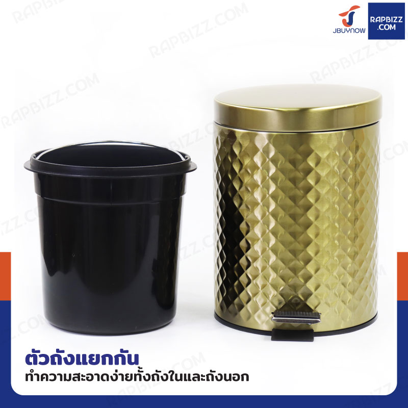 ถังขยะสแตนเลส แบบเหยียบ ทรงกลม 5 ลิตร 20.5x26x27.5 cm สีบรอนซ์ทอง