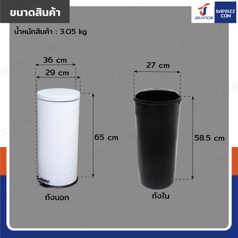 - ขนาดถังด้านใน: 27x27x58.5 cm