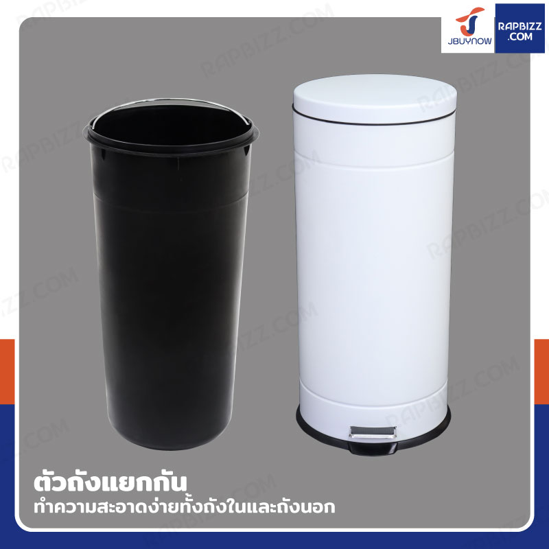 ถังขยะ แบบเหยียบ ทรงกลม 30 ลิตร 29x36x65 cm สีขาว