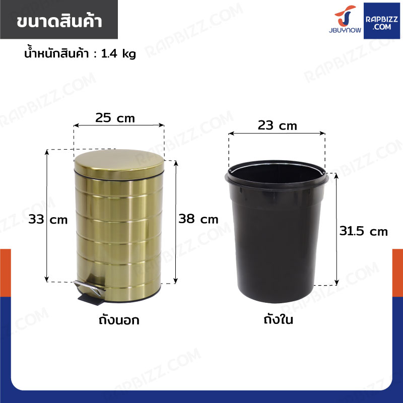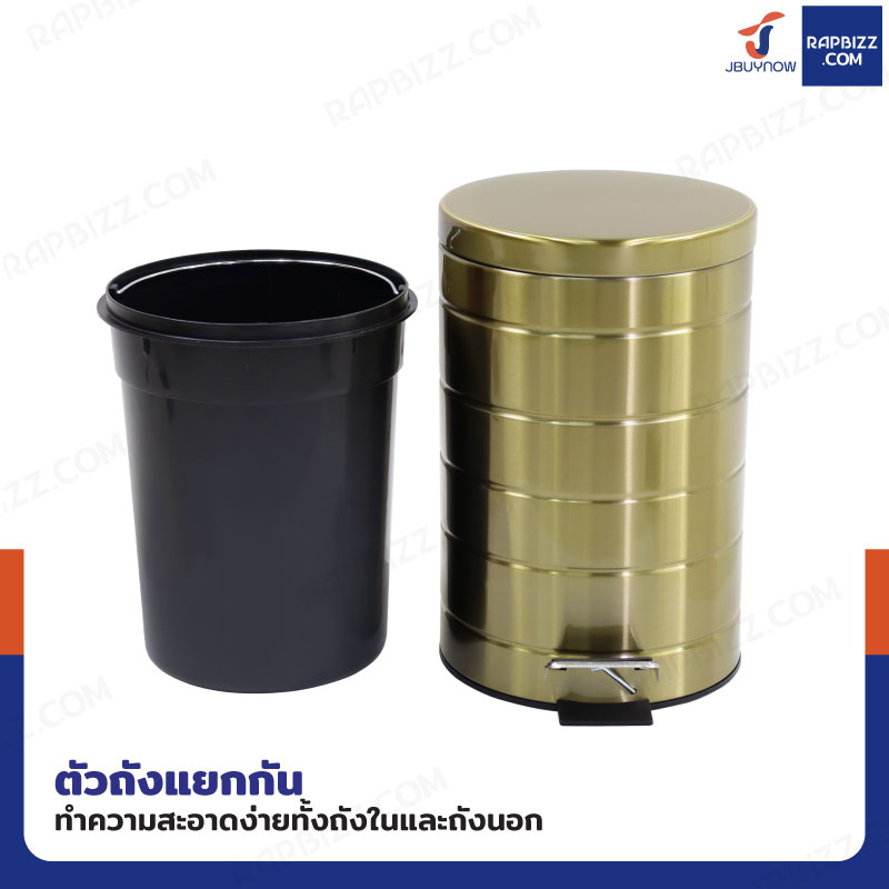 ถังขยะสแตนเลส แบบเหยียบ ทรงกลม 12 ลิตร 25x33x38 cm สีบรอนซ์ทอง