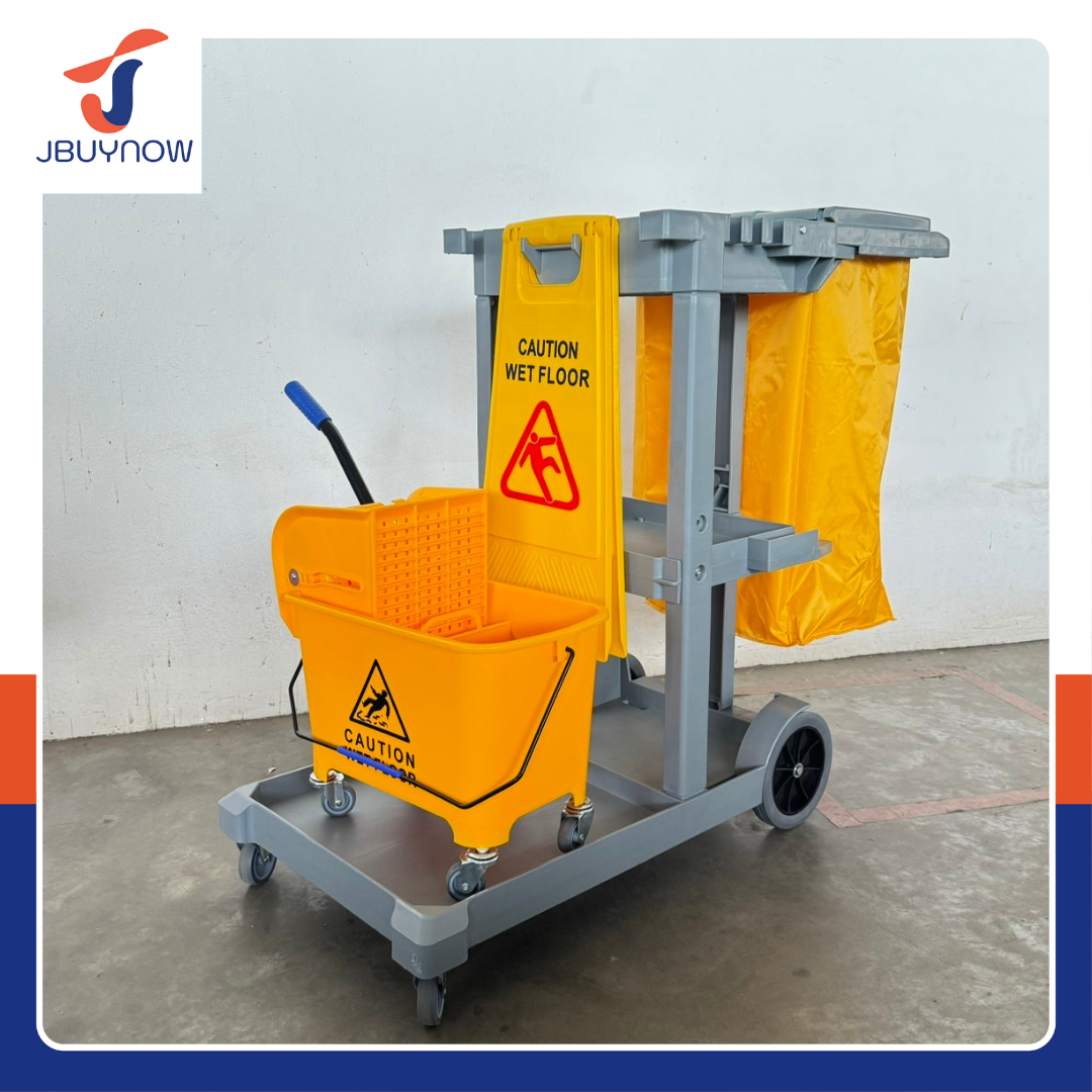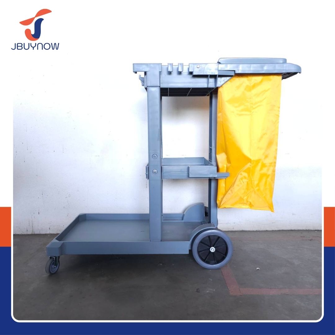 รถเข็นแม่บ้าน 3 ชั้นวาง มีถุงผ้าเก็บของ JBUYNOW H0302GL