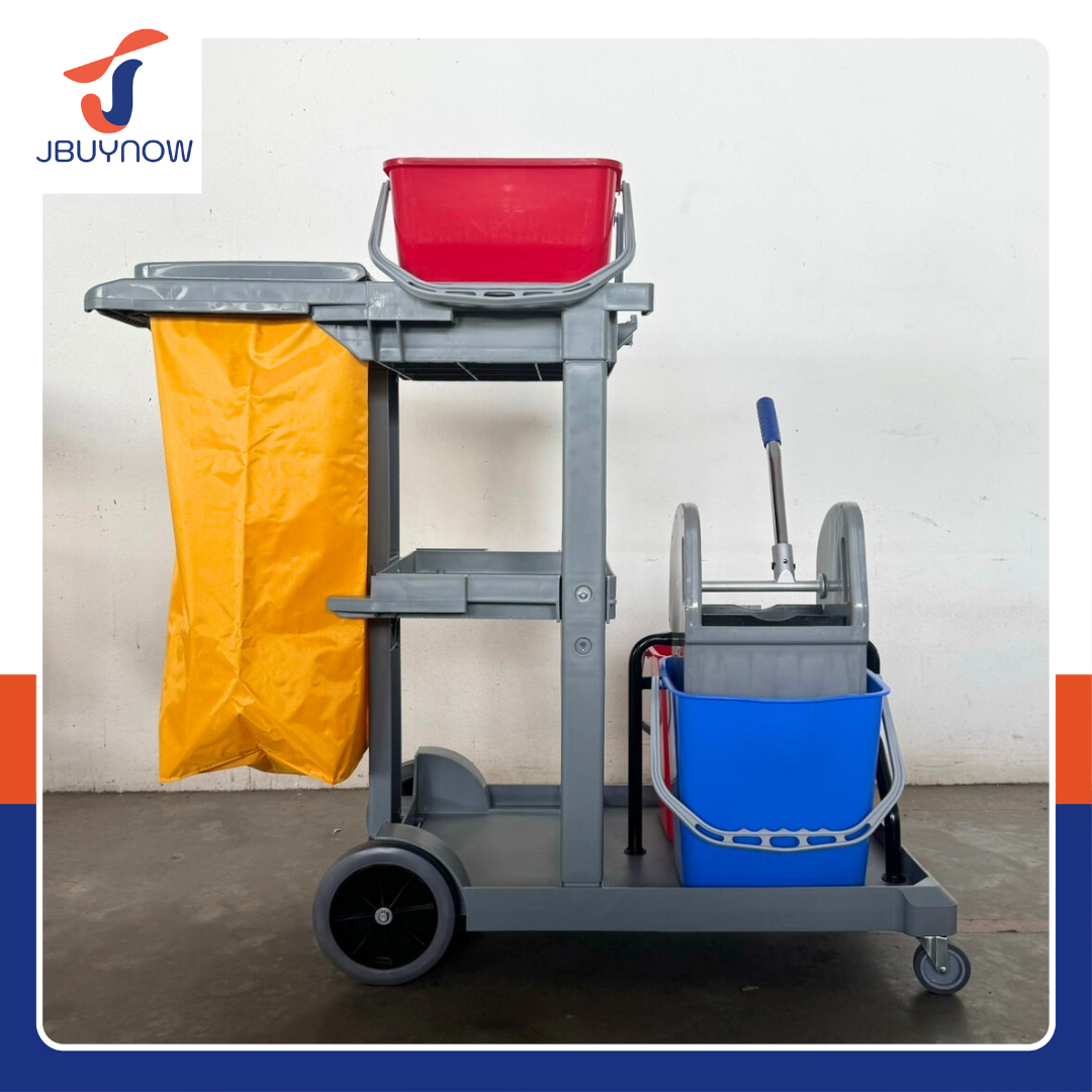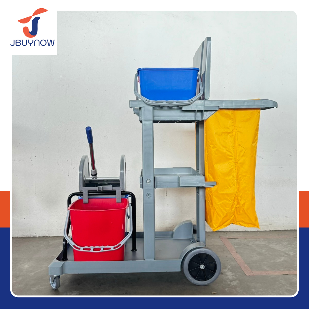 รถเข็นแม่บ้าน 3 ชั้นวาง มีถุงผ้าเก็บของ JBUYNOW H0302BL