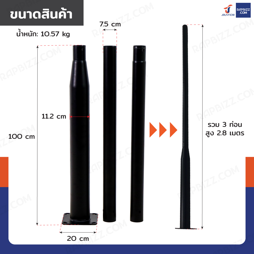 - เสาแบ่งออกเป็น 3 ท่อน ท่อนละ 1 เมตร