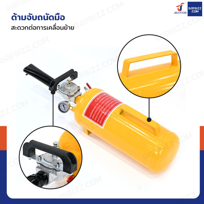 - ต้องระวังการสะบัดของถัง ควรจับถังให้ถนัดมือ