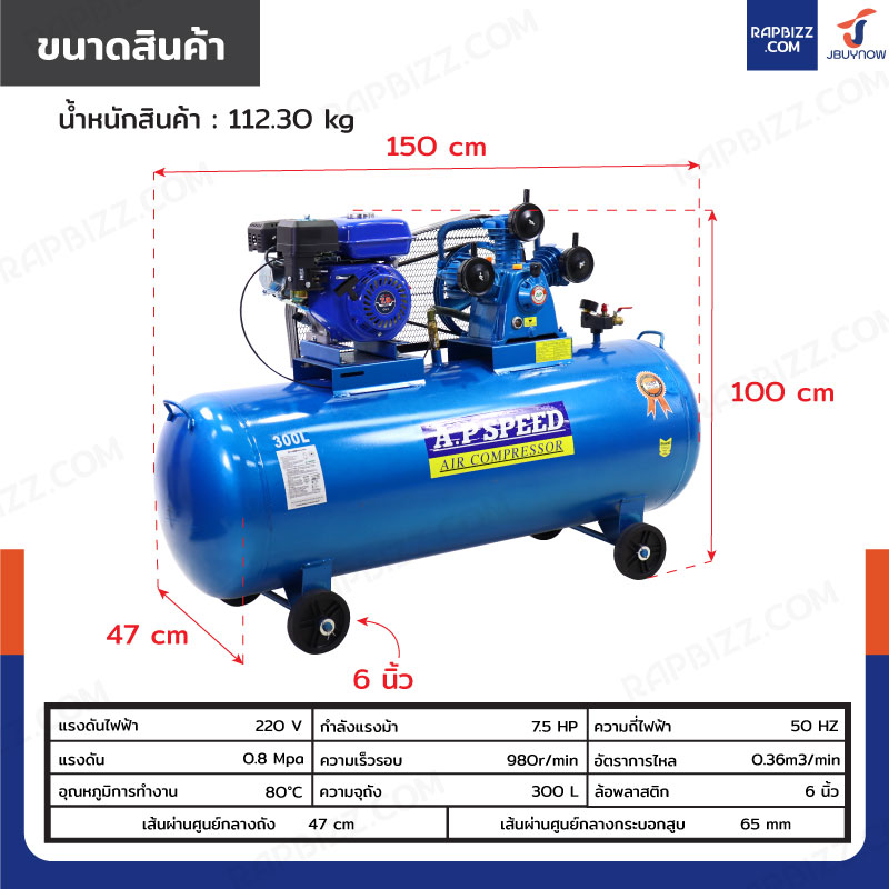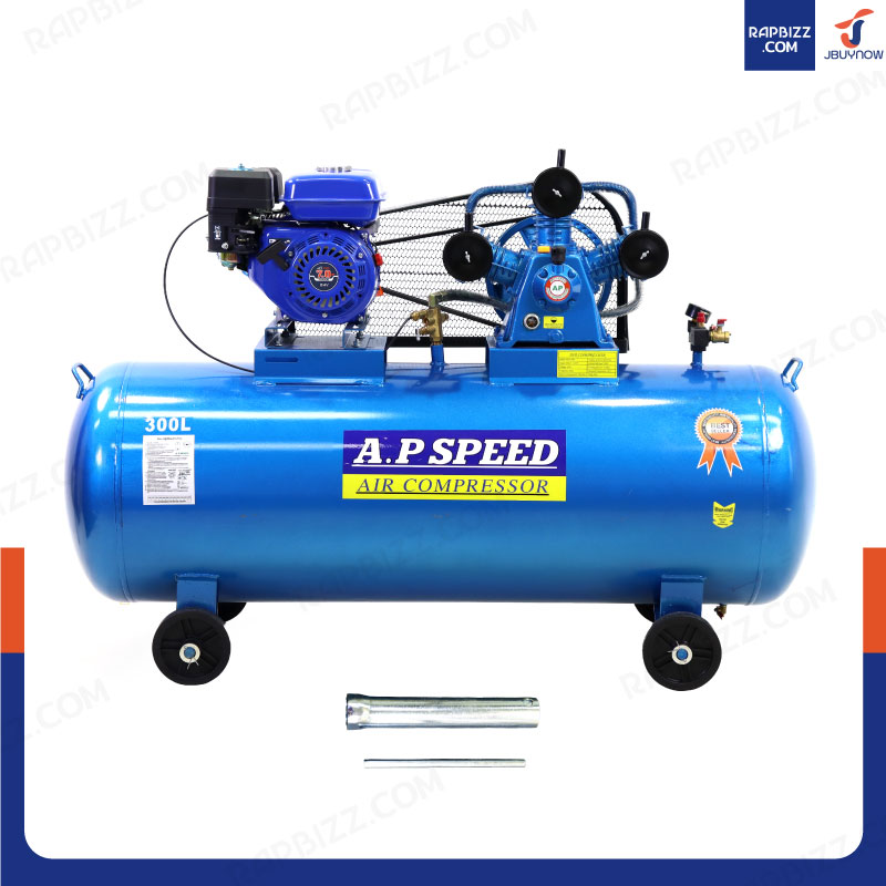 A.P SPEED ปั๊มลม 300 ลิตร เครื่องยนต์เบนซิน 7.5แรงม้า 3สูบ สีฟ้า