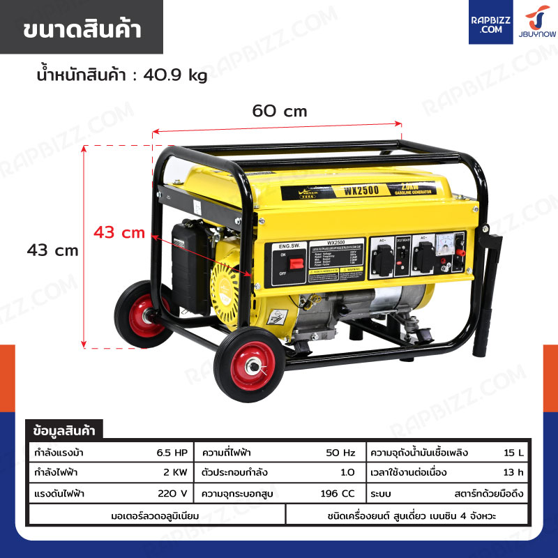 - สตาร์ทแบบมือดึง ให้กำลังไฟได้ดีกระแสไฟนิ่ง น้ำหนักเบา