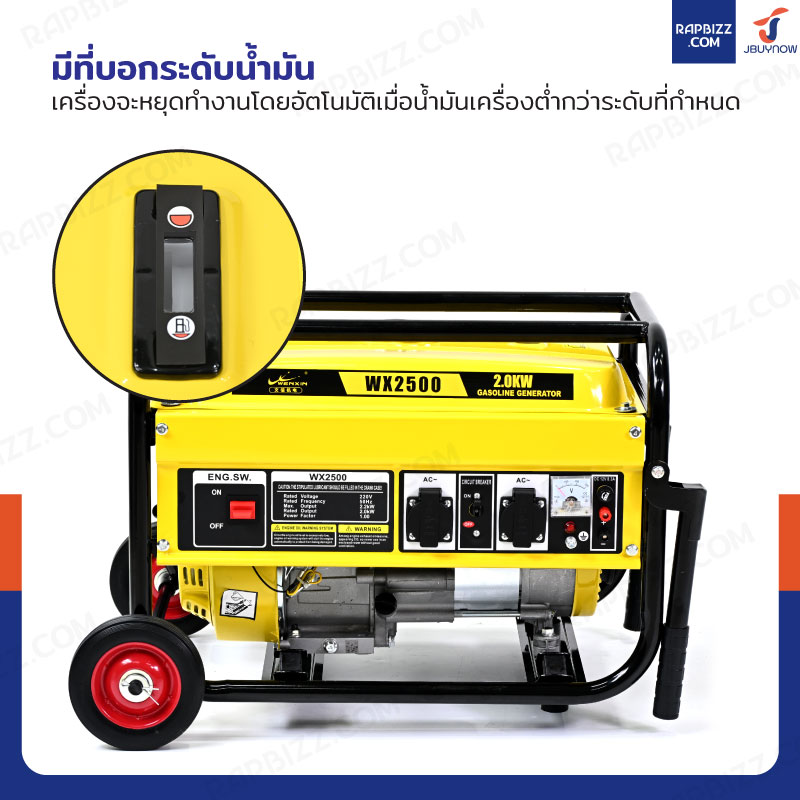 - มีที่บอกระดับน้ำมัน เครื่องจะหยุดทำงานโดยอัตโนมัติเมื่อน้ำมันเครื่องต่ำกว่าระดับที่กำหนด