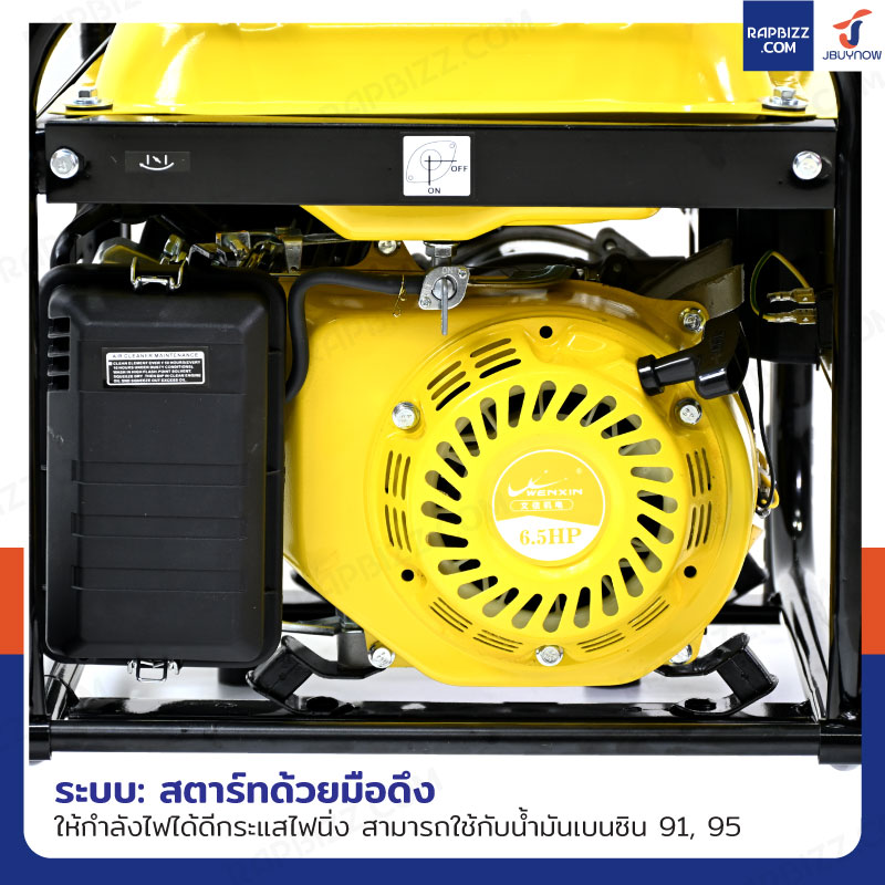 เครื่องปั่นไฟ เบนซิน 2Kw 6.5HP 4จังหวะ มอเตอร์ลวดอลูมิเนียม รุ่นสตารท์มือ สีเหลือง WENXIN WX-2KW