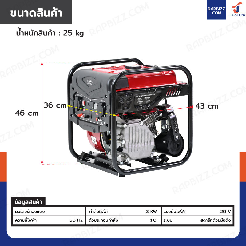 - สตาร์ทแบบมือดึง ให้กำลังไฟได้ดีกระแสไฟนิ่ง น้ำหนักเบา