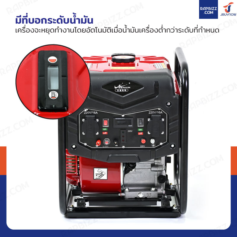 เครื่องปั่นไฟ เบนซิน 3Kw Inverter มอเตอร์ทองแดง รุ่น สตารท์มือ สีแดง WENXIN WX-3KW(INVERTER)