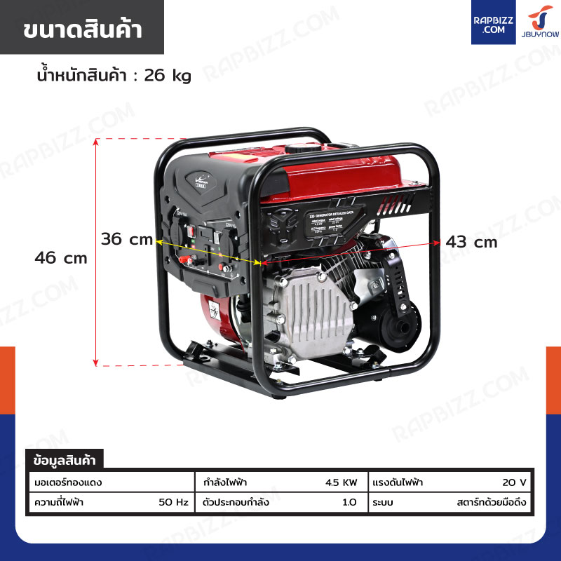 - สตาร์ทแบบมือดึง ให้กำลังไฟได้ดีกระแสไฟนิ่ง น้ำหนักเบา