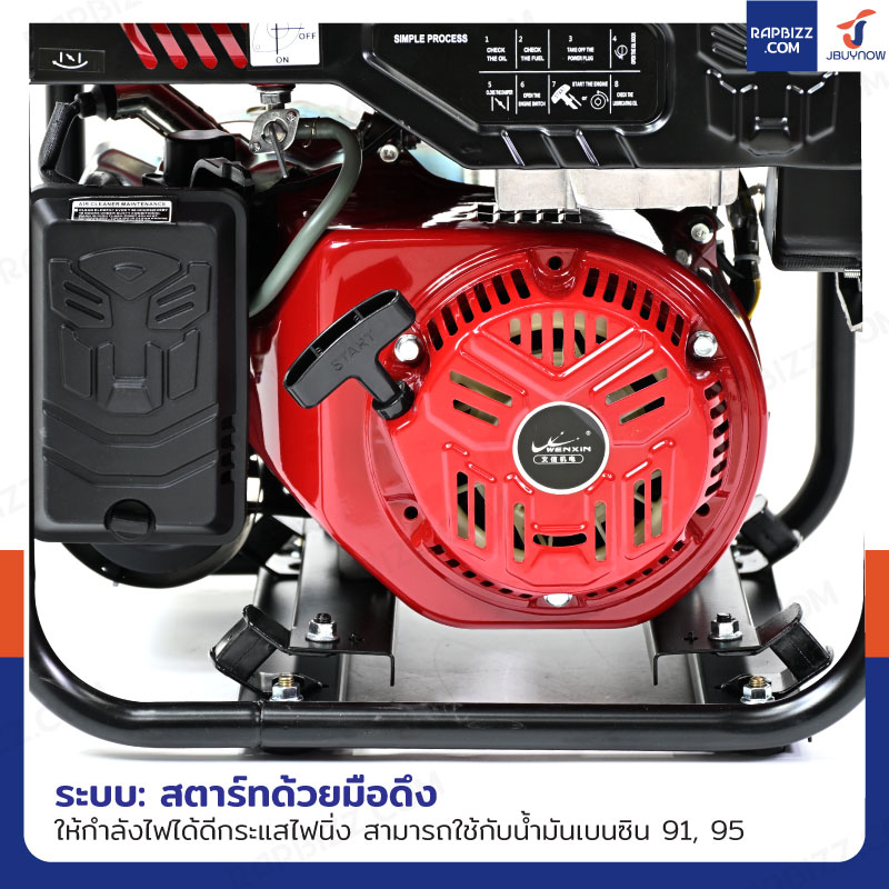 เครื่องปั่นไฟ เบนซิน 4.5Kw Inverter มอเตอร์ทองแดง รุ่น สตารท์มือ สีแดง WENXIN WX-4.5KW(INVERTER)