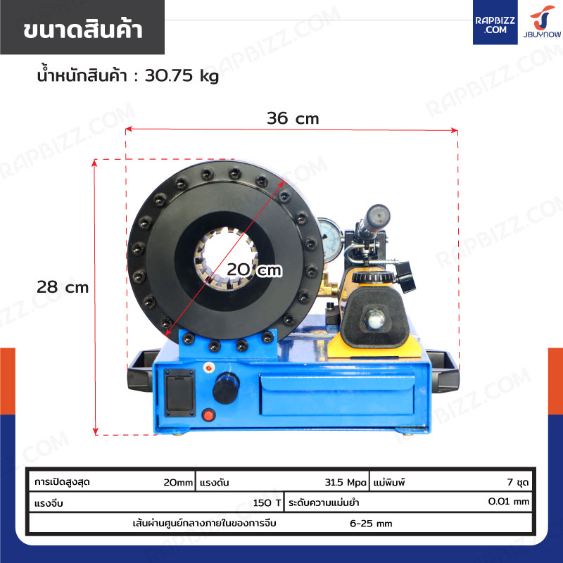 เครื่องอัดสายไฮดรอลิก 1 นิ้ว แรงดัน 31.5 Mpa พร้อมแม่พิมพ์ 7 ชุด