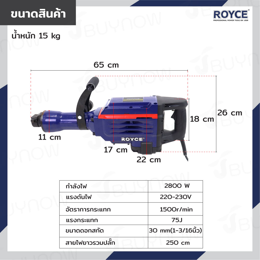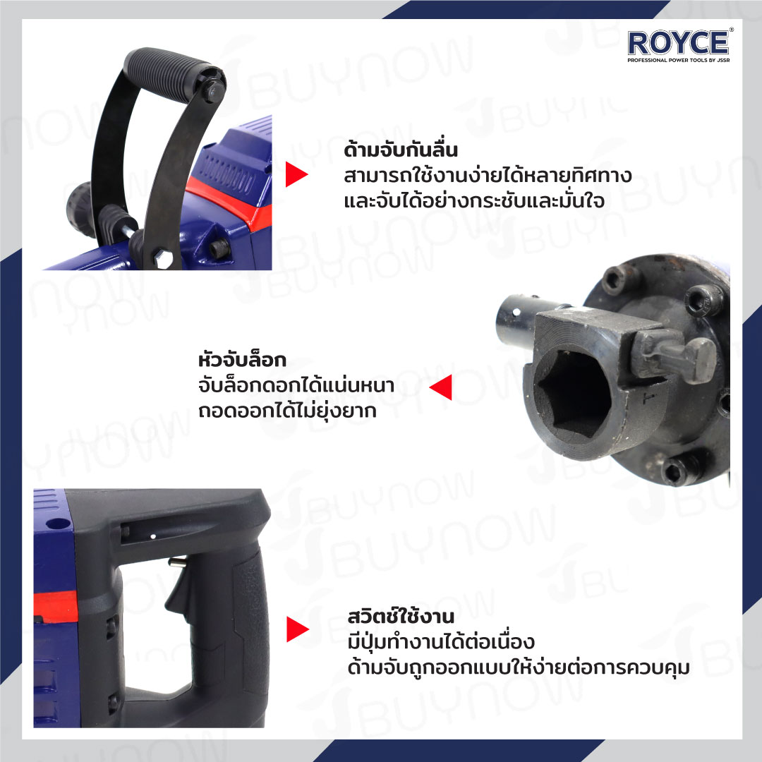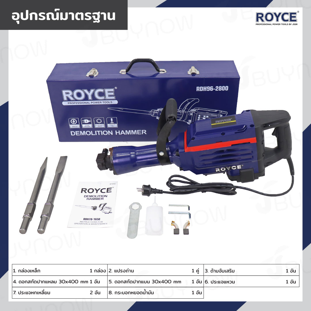 สว่านเจาะปูน เครื่องสกัดไฟฟ้า แย๊ก 30mm 2800W ROYCE JBUYNOW RDH96-2800
