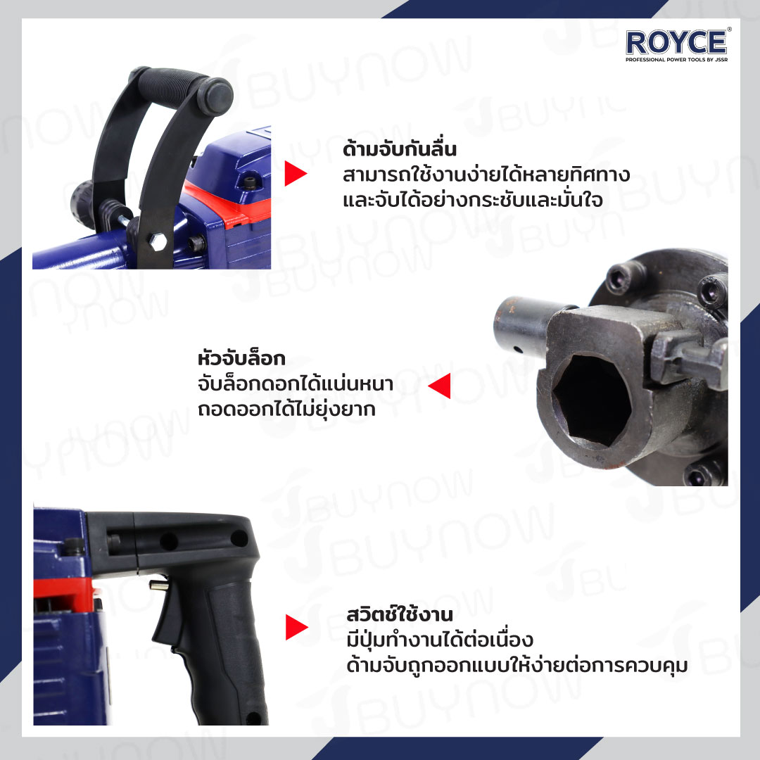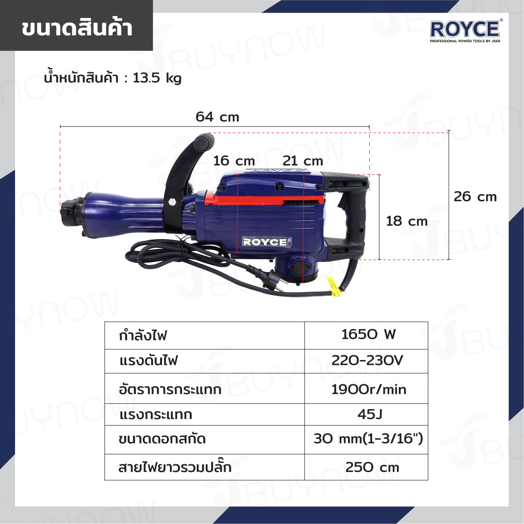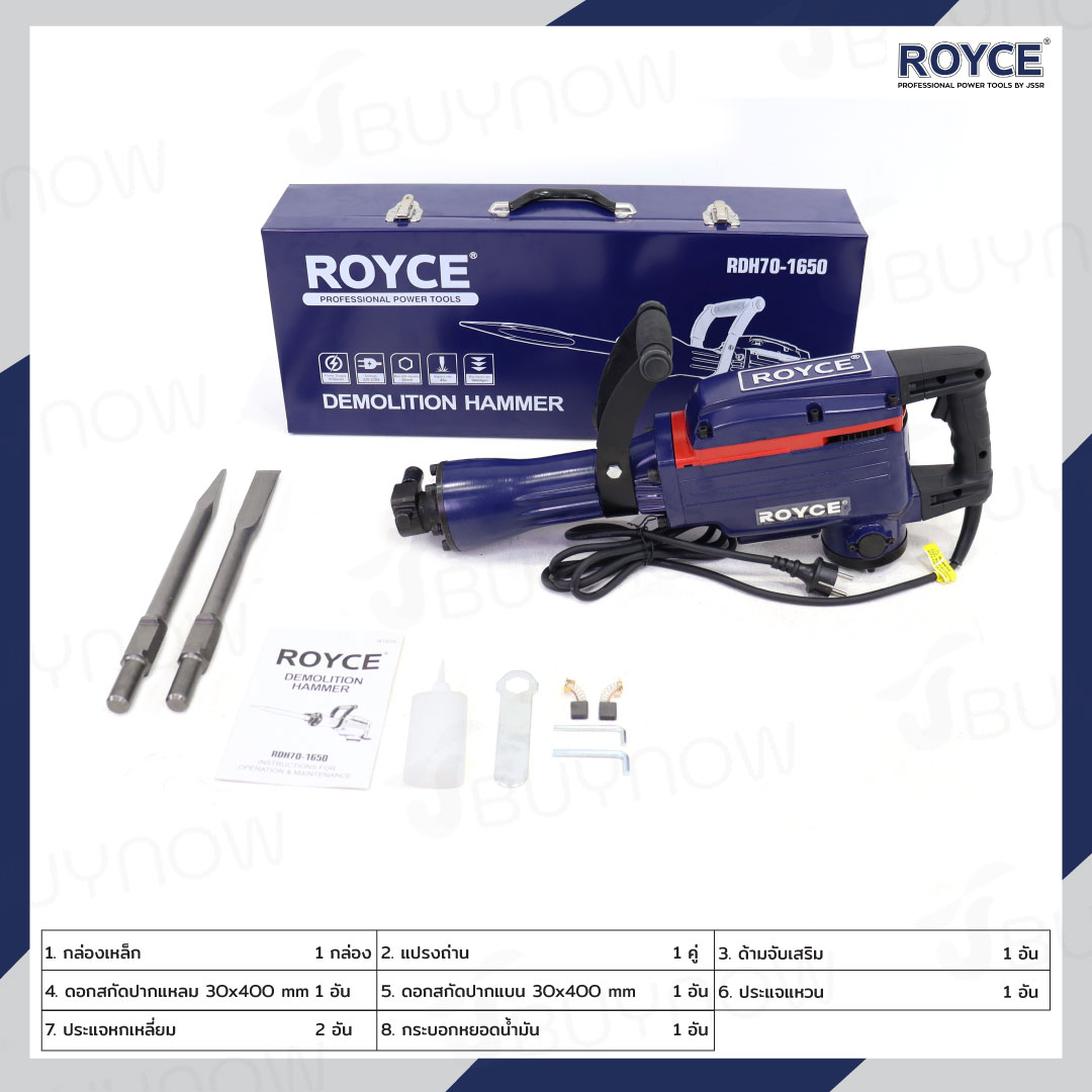 สว่านเจาะปูน เครื่องสกัดไฟฟ้า แย๊ก 30mm 1650W ROYCE JBUYNOW RDH70-1650