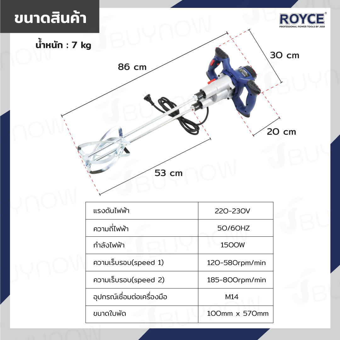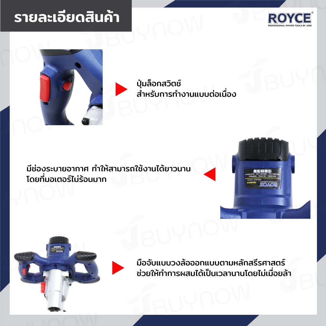เครื่องผสมปูนซีเมนต์ 1500W ROYCE JBUYNOW REHM-150c