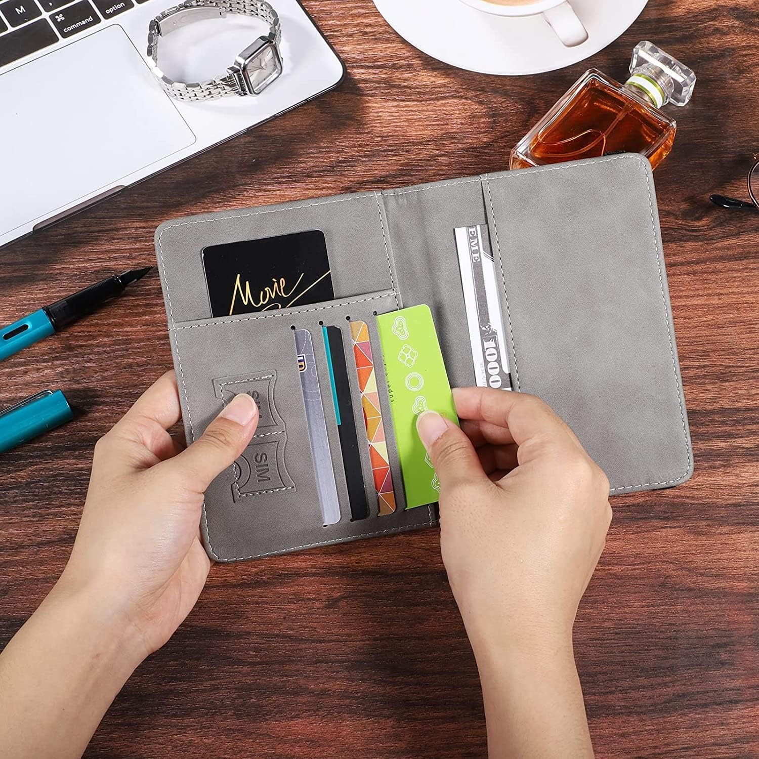 - ออกแบบมาโดยเฉพาะเพื่อเก็บหนังสือเดินทาง และมีช่องใส่บัตรประเภทต่างๆ