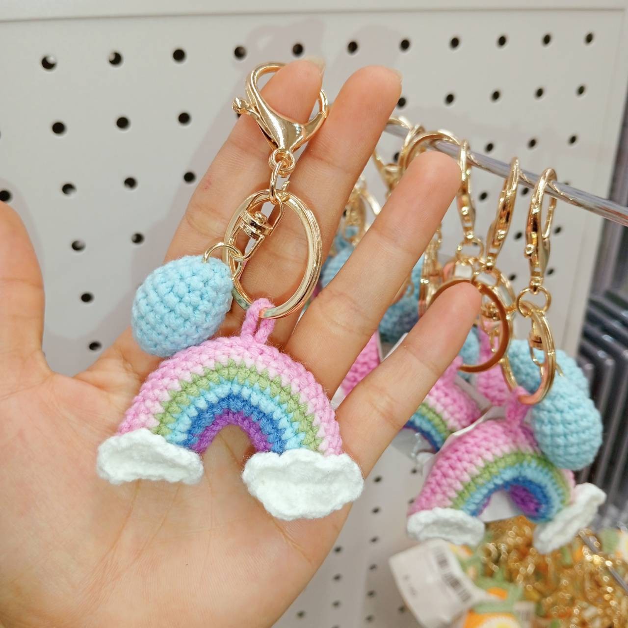 พวงกุญแจ รุ้ง สีชมพู โครเชต์ RB230904-20B
