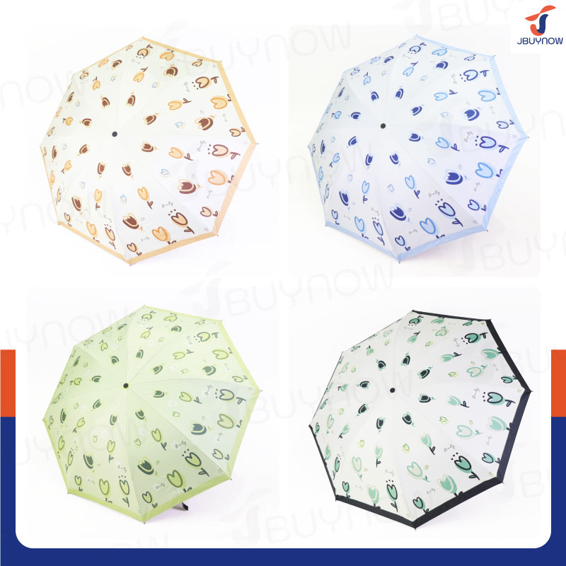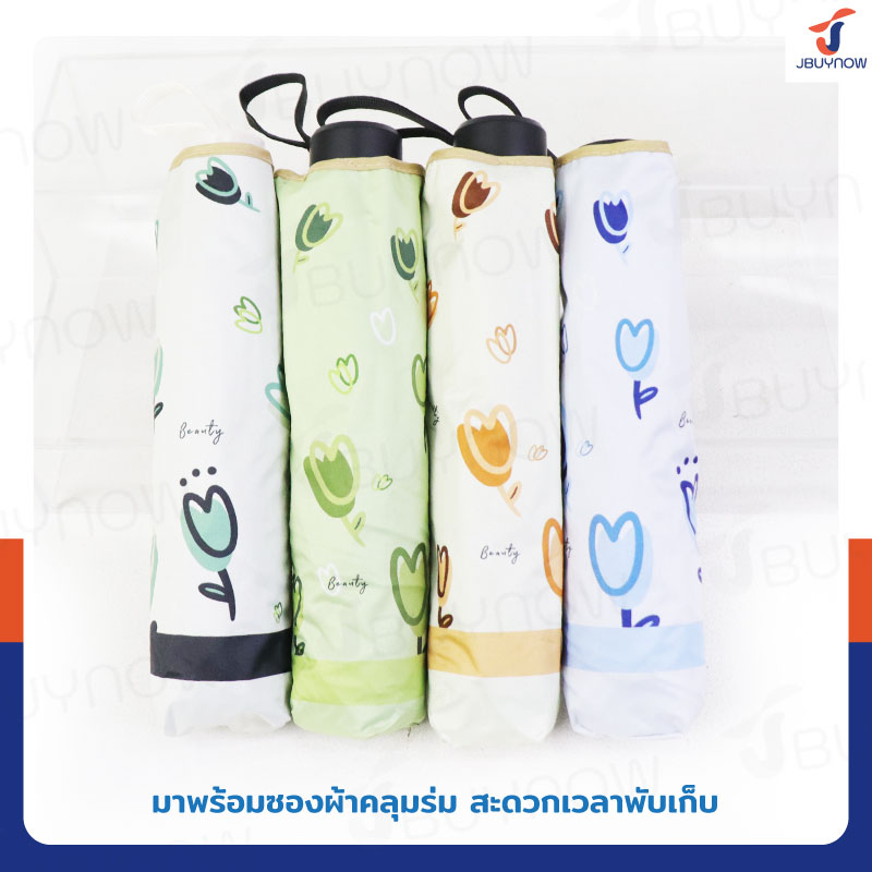 - ร่มพับ 3 ตอน ลายดอกทิวลิป คละสี