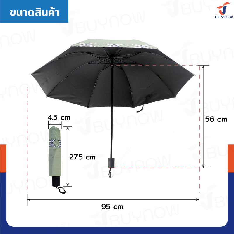- ร่มพับ 3 ตอน ขอบลายตาราง คละสี