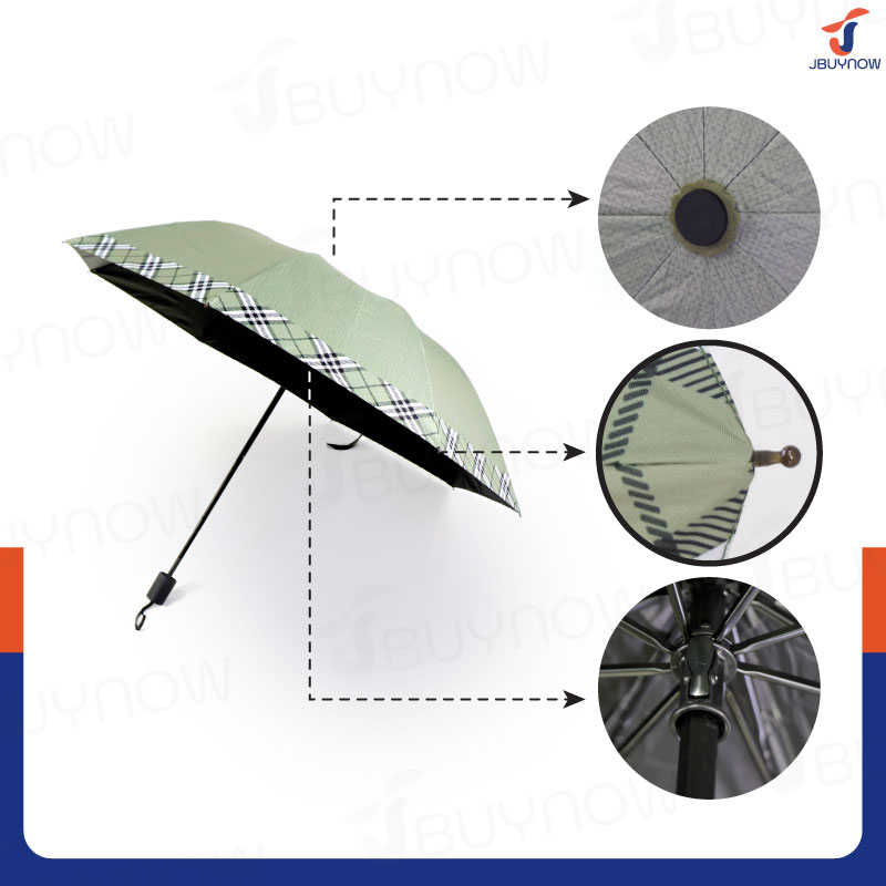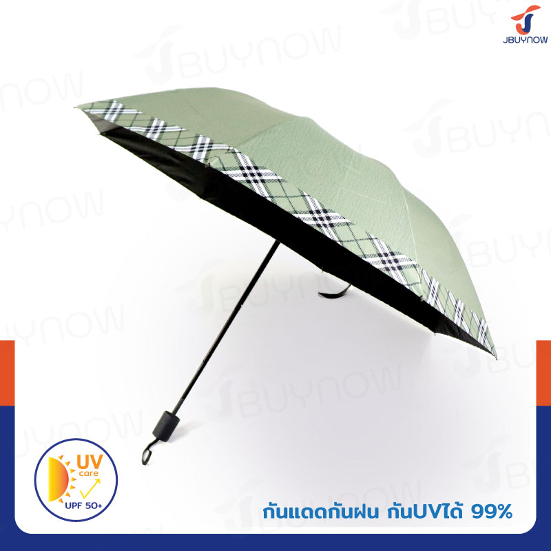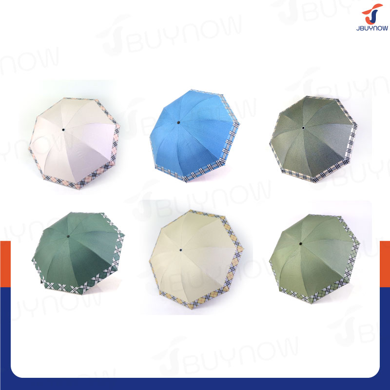 ร่มพับ 3 ตอน ขอบลายตาราง คละสี RB-732