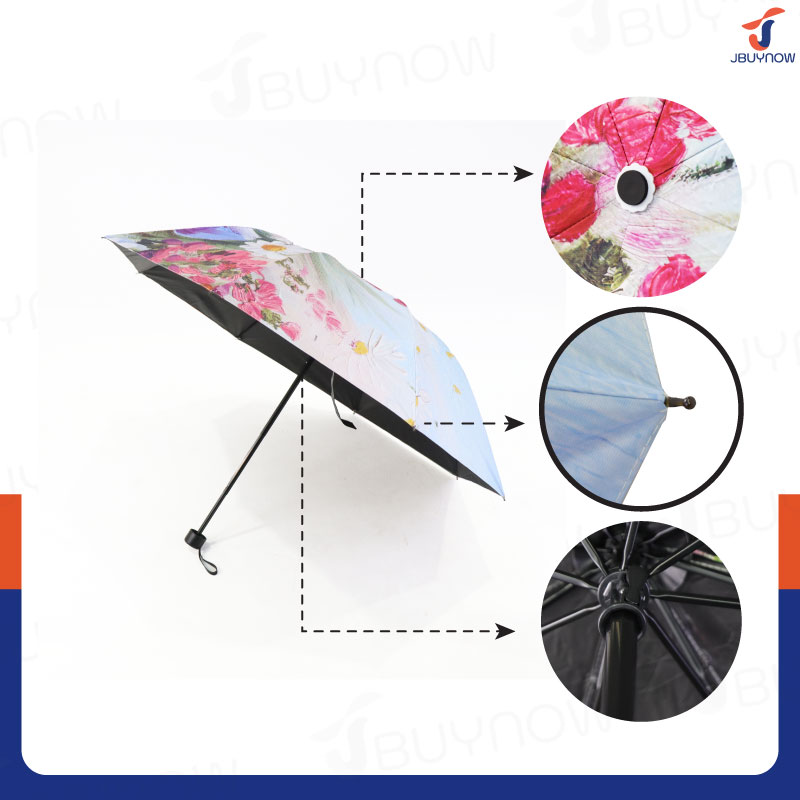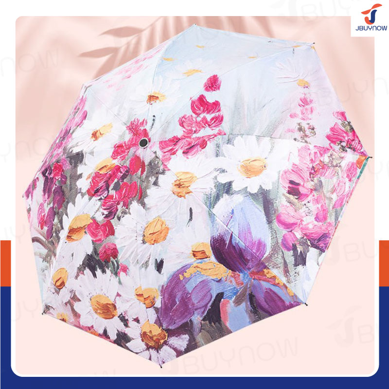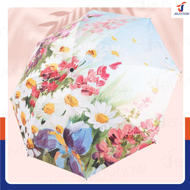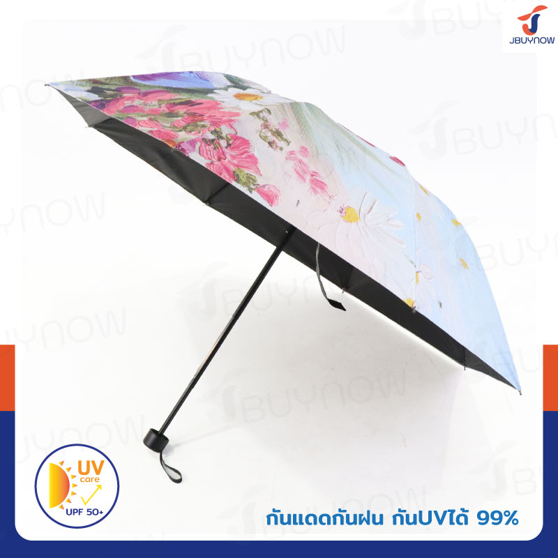 - ร่มพับ 3 ตอน ลายภาพวาดสีน้ำมันดอกไม้ คละสี