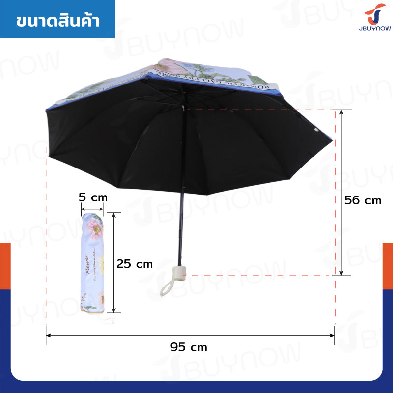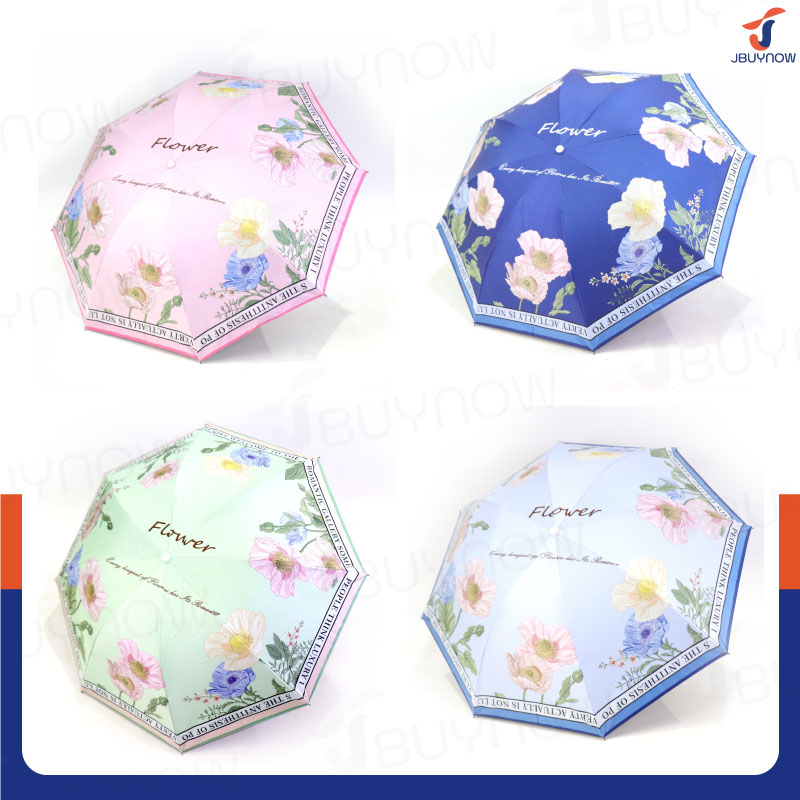 ร่มพับ 3 ตอน ลายดอกไม้ คละสี RB-237