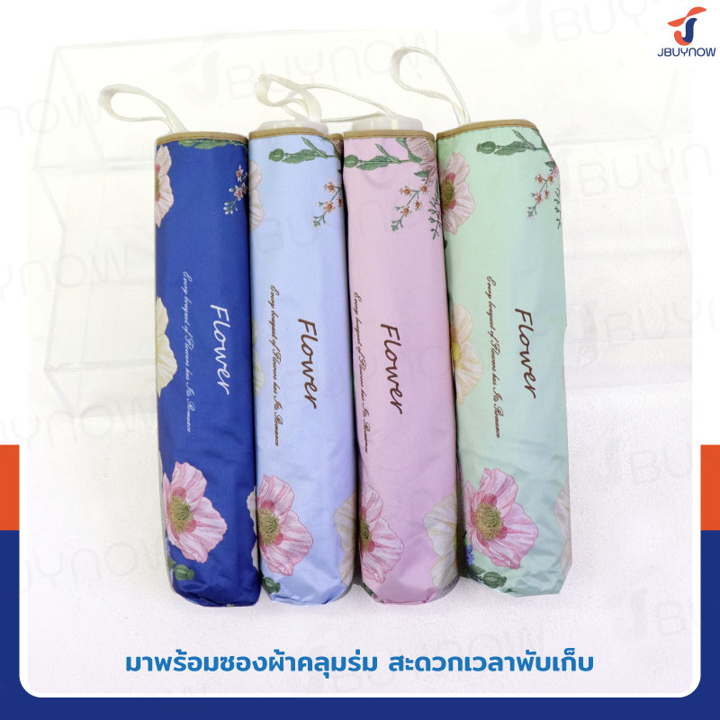 - ร่มพับ 3 ตอน ลายดอกไม้ คละสี