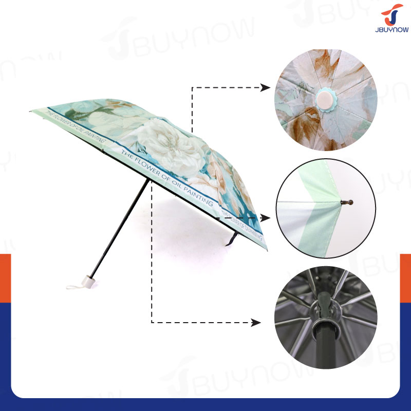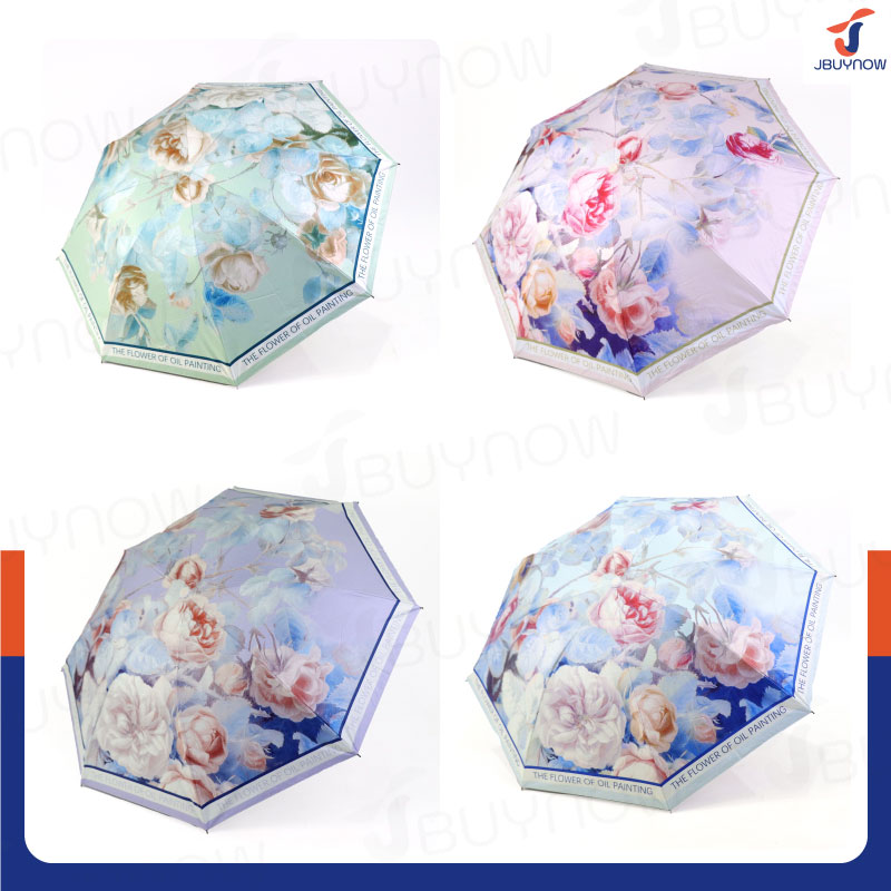 - ร่มพับ 3 ตอน ลายภาพวาดสีน้ำมันดอกไม้หลากสี คละสี