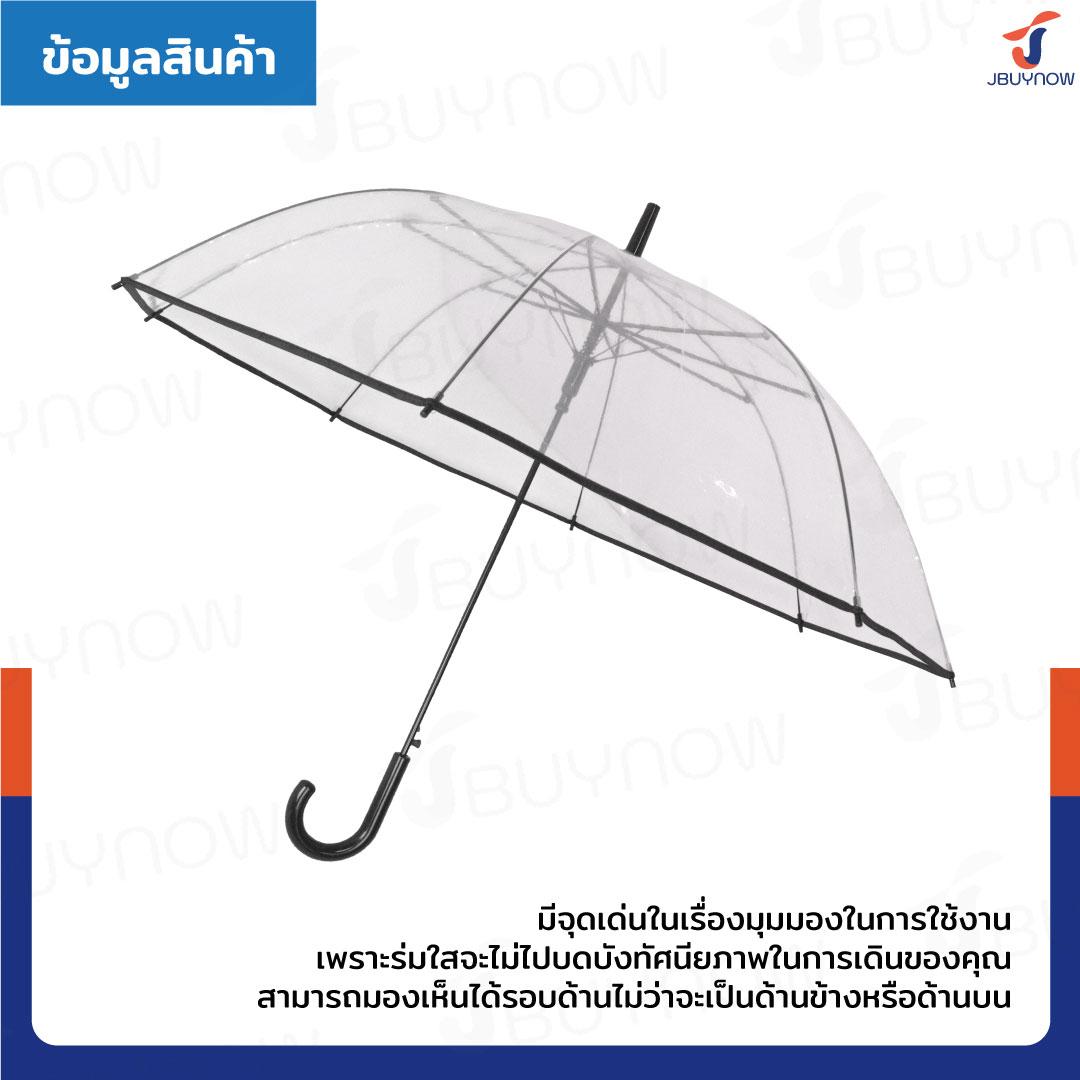 - มีจุดเด่นในเรื่องมุมมองในการใช้งาน เพราะร่มใสจะไม่ไปบดบังทัศนียภาพในการเดินของคุณ สามารถมองเห็นได้รอบไม่ว่าจะเป็น ด้านข้างหรือด้านบน