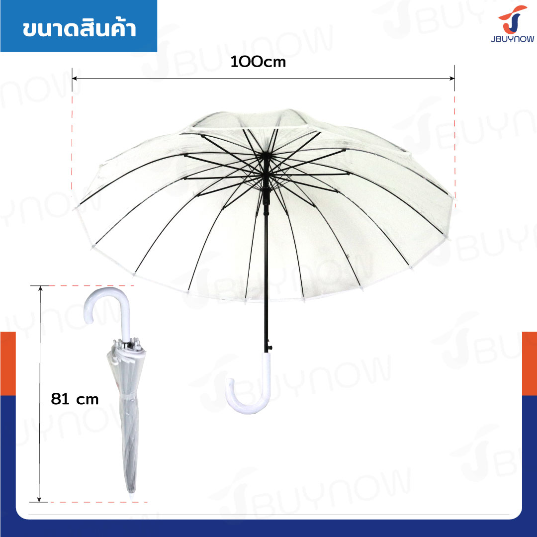 ร่มใส POE ร่มกันฝน ด้ามยาว ด้ามคละสี JBUYNOW RST688