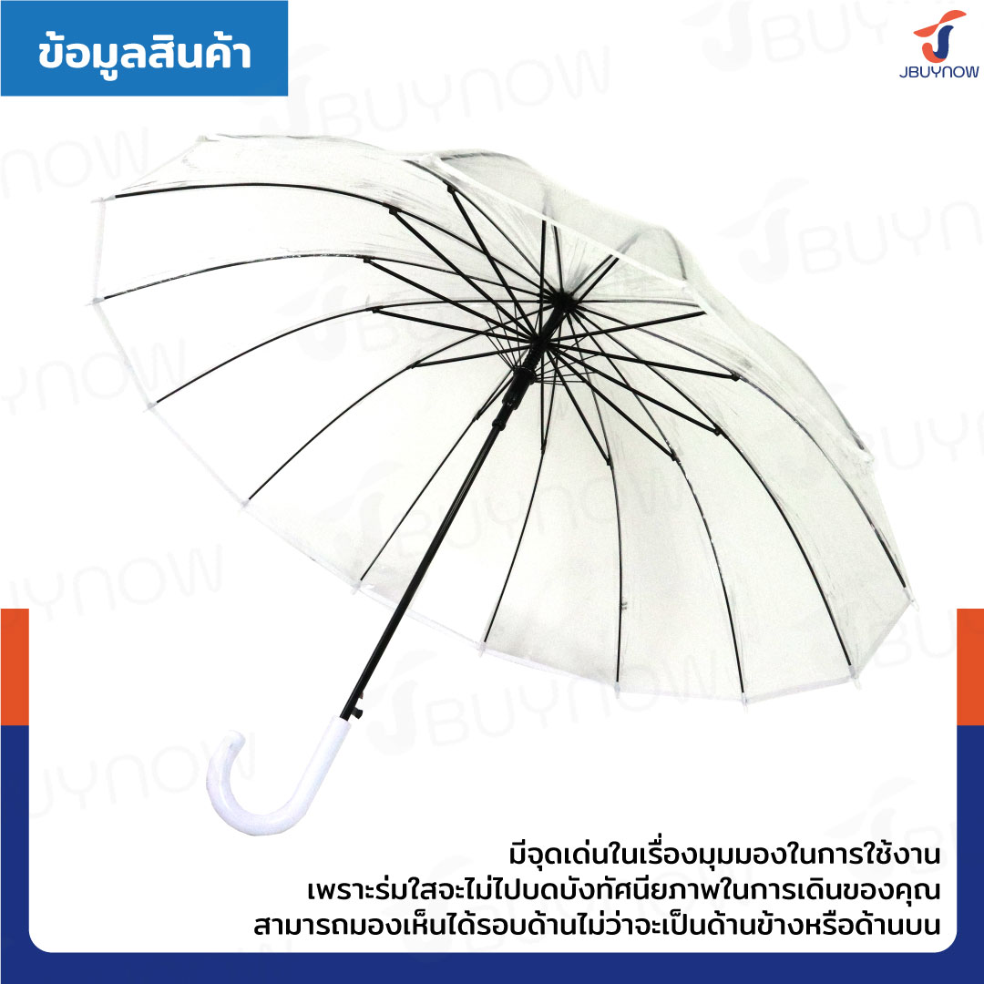 - มีจุดเด่นในเรื่องมุมมองในการใช้งาน เพราะร่มใสจะไม่ไปบดบังทัศนียภาพในการเดินของคุณ สามารถมองเห็นได้รอบไม่ว่าจะเป็น ด้านข้างหรือด้านบน