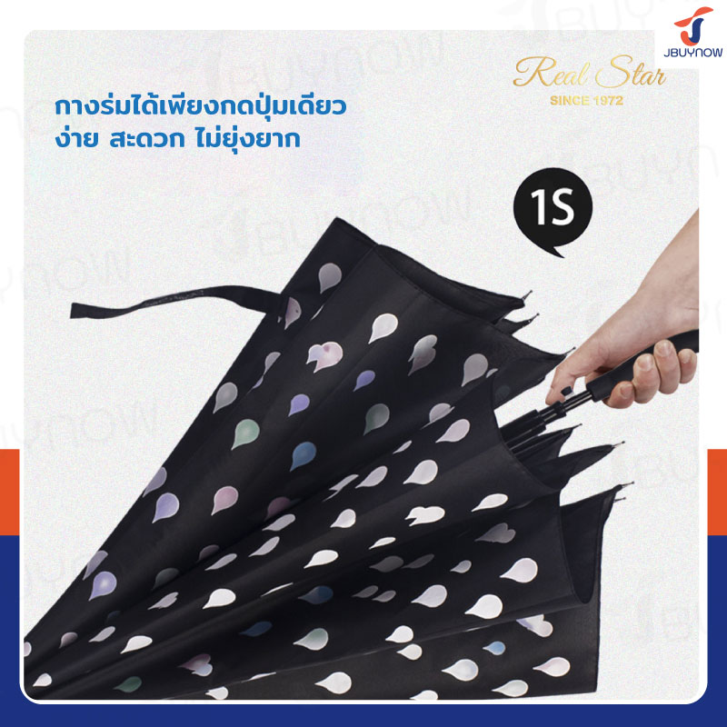 - เปิดอัตโนมัติ กางร่มได้เพียงกดปุ่มเดียว ง่าย สะดวก ไม่ยุ่งยาก