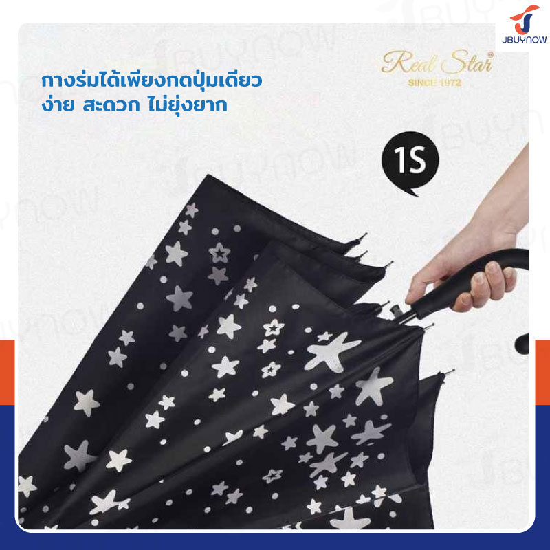 - เปิดอัตโนมัติ กางร่มได้เพียงกดปุ่มเดียว ง่าย สะดวก ไม่ยุ่งยาก