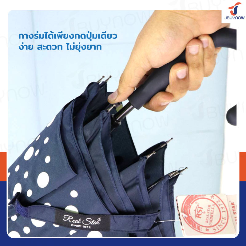 - เปิดอัตโนมัติ กางร่มได้เพียงกดปุ่มเดียว ง่าย สะดวก ไม่ยุ่งยาก