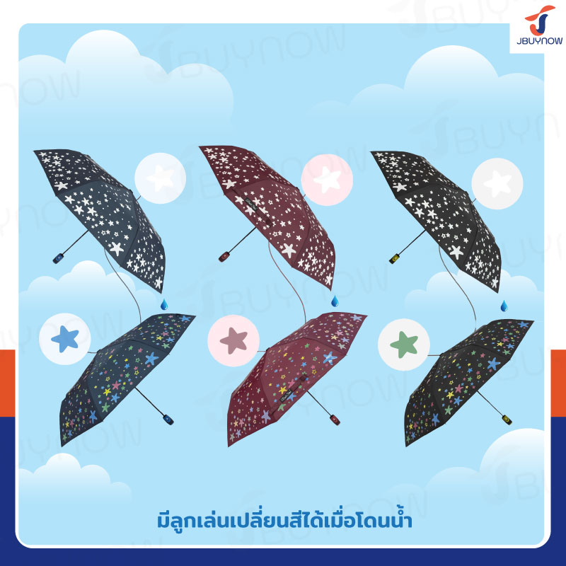 ร่มเปลี่ยนสีได้ ร่มพับ 3 ตอน ลายดาว คละสี RST3802A
