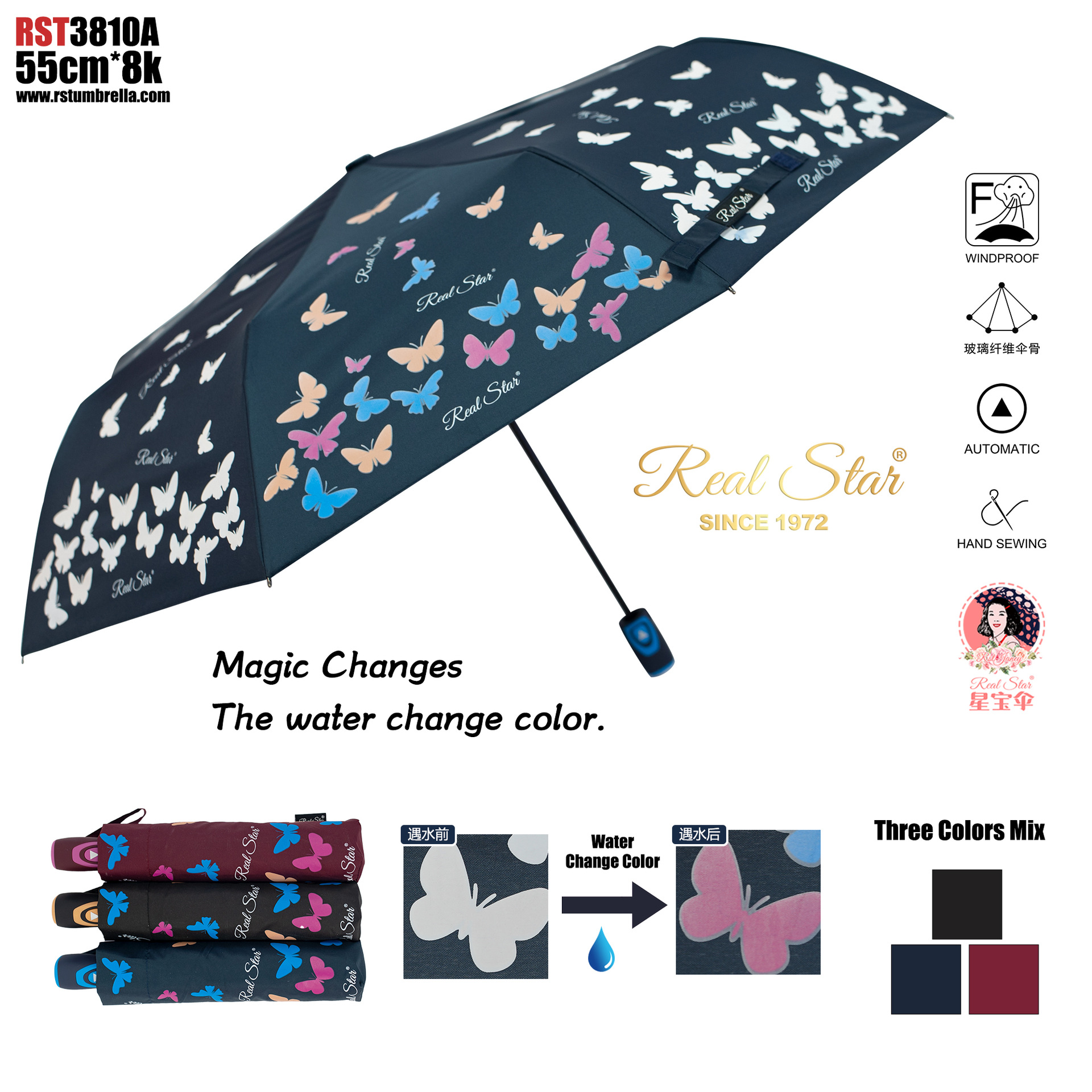 ร่มเปลี่ยนสีได้ ร่มพับ 3 ตอน ลายผีเสื้อ คละสี JBUYNOW RST3810A