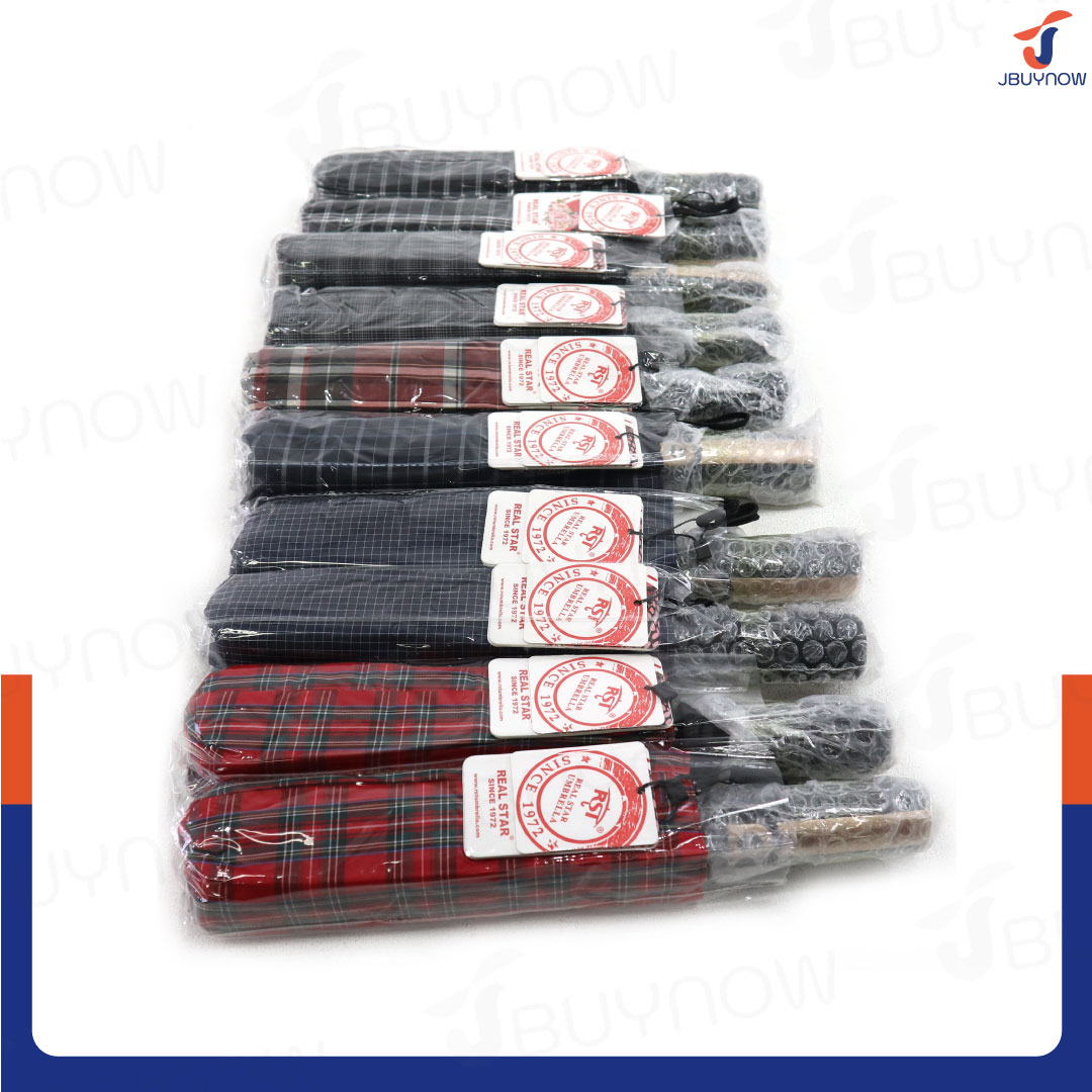 ร่มพับ 3 ตอน ลายสก็อต คละสี JBUYNOW 3912