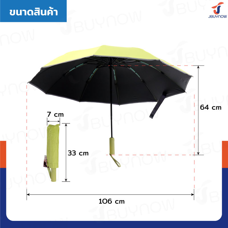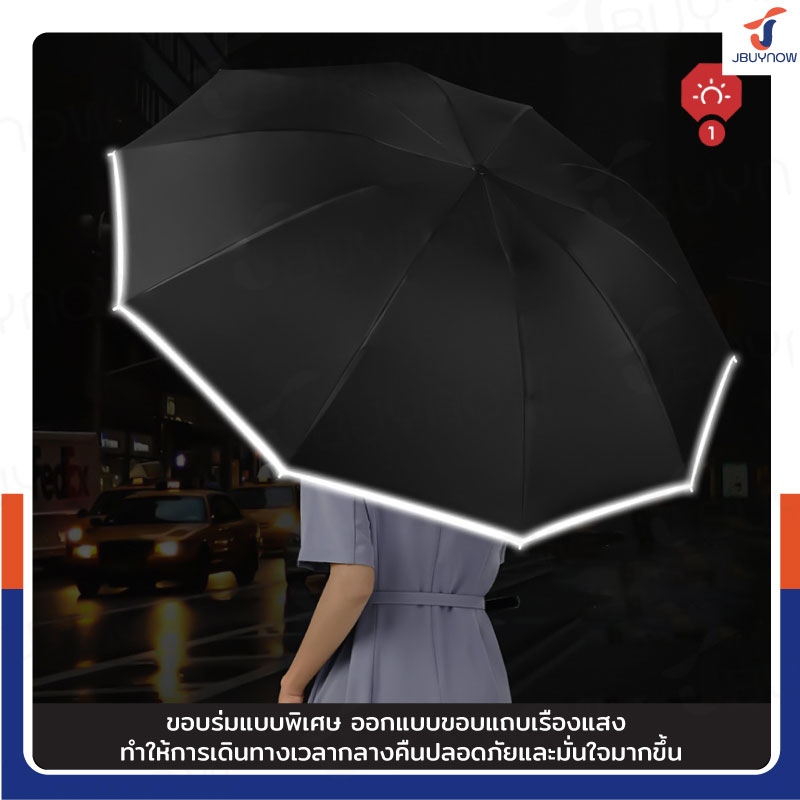 - ขอบร่มแบบพิเศษออกแบบขอบแถบเรืองแสง ทำให้การเดินทางเวลากลางคืนปลอดภัยและมั่นใจมากขึ้น