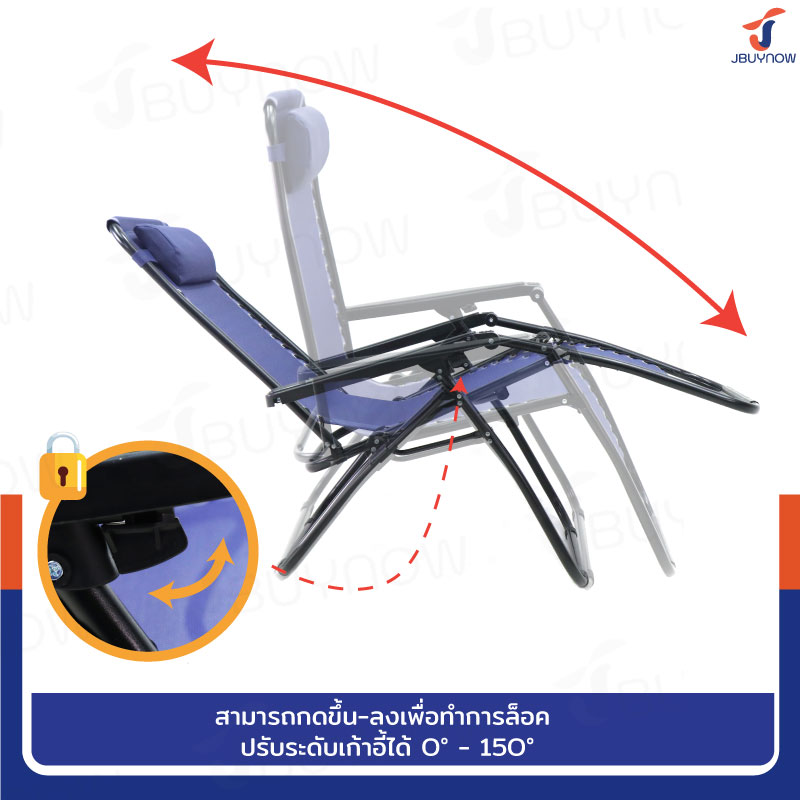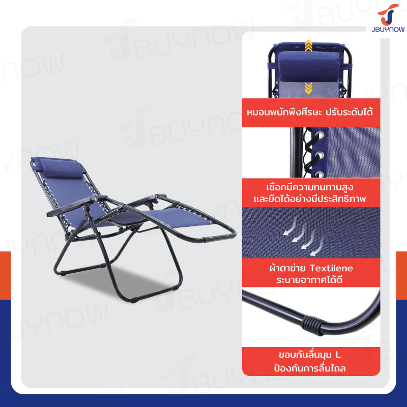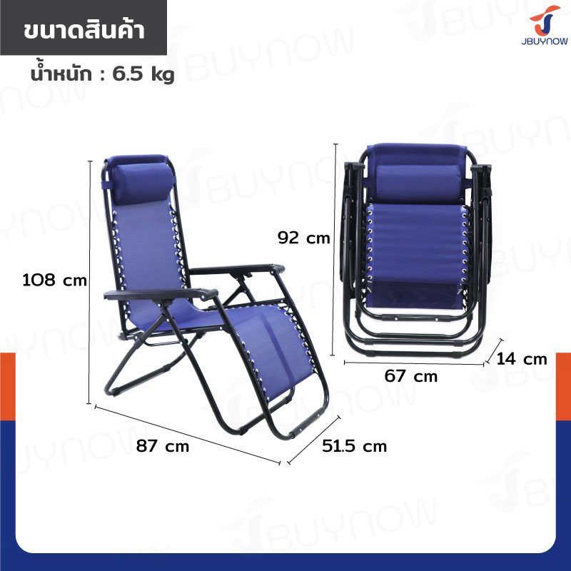 เก้าอี้พับ เก้าอี้พักผ่อน ปรับเอนนอนได้ 51.5x87x108 cm รับน้ำหนัก 150 kg สีน้ำเงิน YLFC-0271